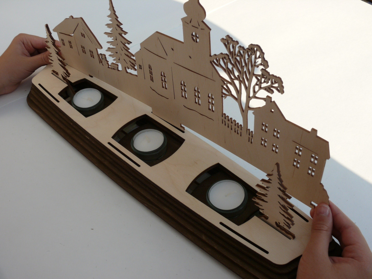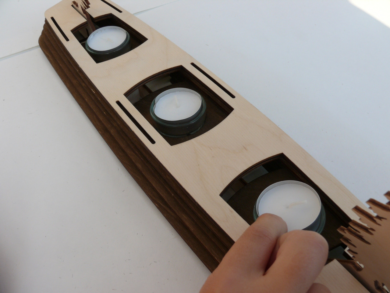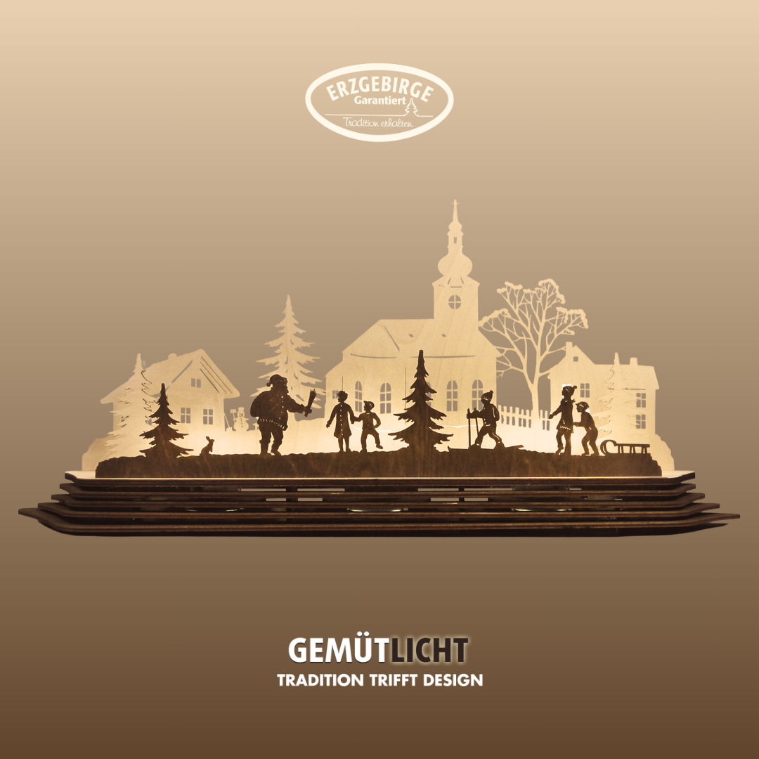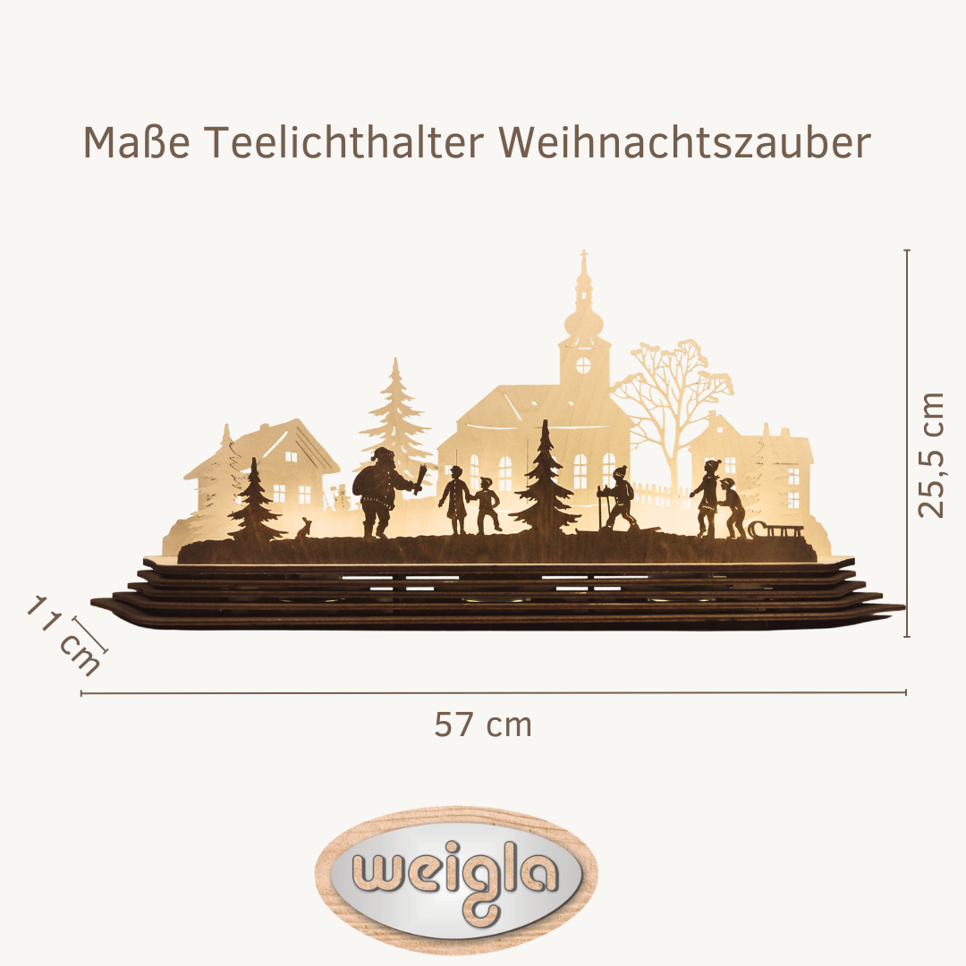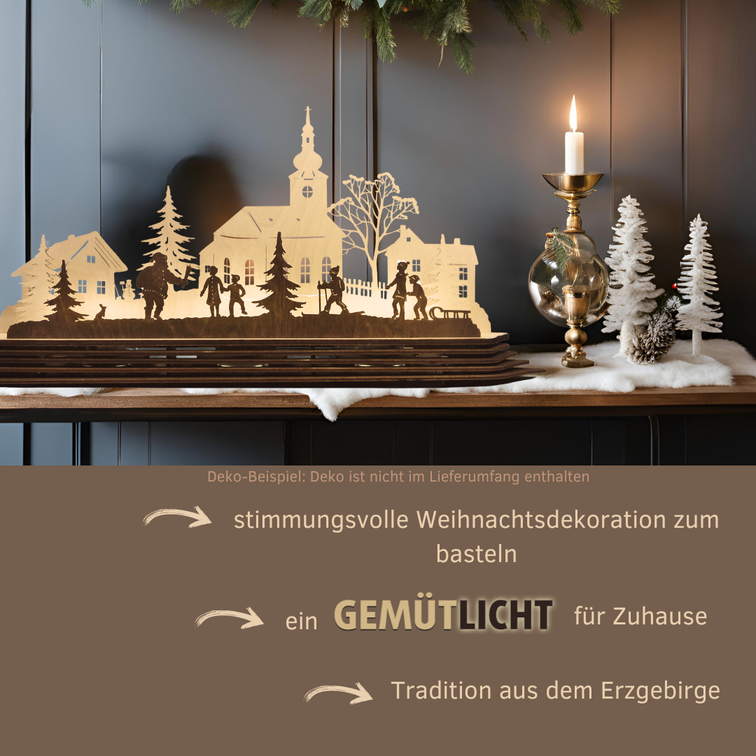 - Stimmungsvolle Beleuchtung: Die Szene wird durch drei im Set enthaltene Glaseinsätze für Teelichter perfekt in Szene gesetzt. Die Lichter sind hinter der ersten Blende (Weihnachtsmann mit Kindern) versteckt und sorgen für ein warmes, gemütliches Lichtspiel.
