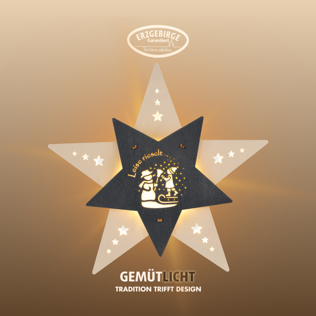 Ob an Ihrem Fenster oder als stimmungsvolles Geschenk – das Fensterbild Stern „Leise rieselt der Schnee“ ist ein echter Blickfang in der kalten Jahreszeit. Holen Sie sich winterliche Gemütlichkeit ins Haus und genießen Sie den Anblick dieses zauberhaften Holzkunstwerks!