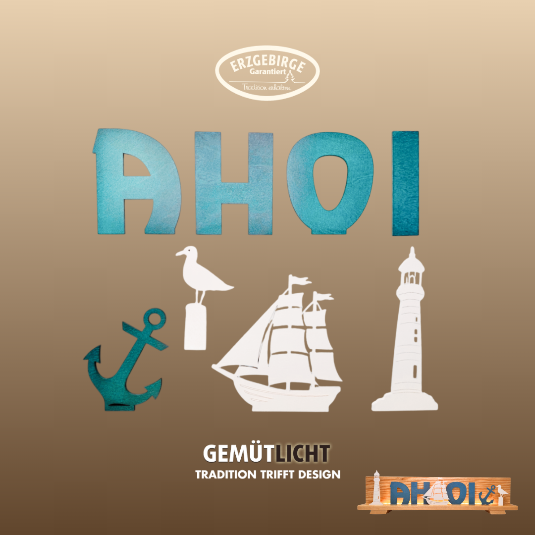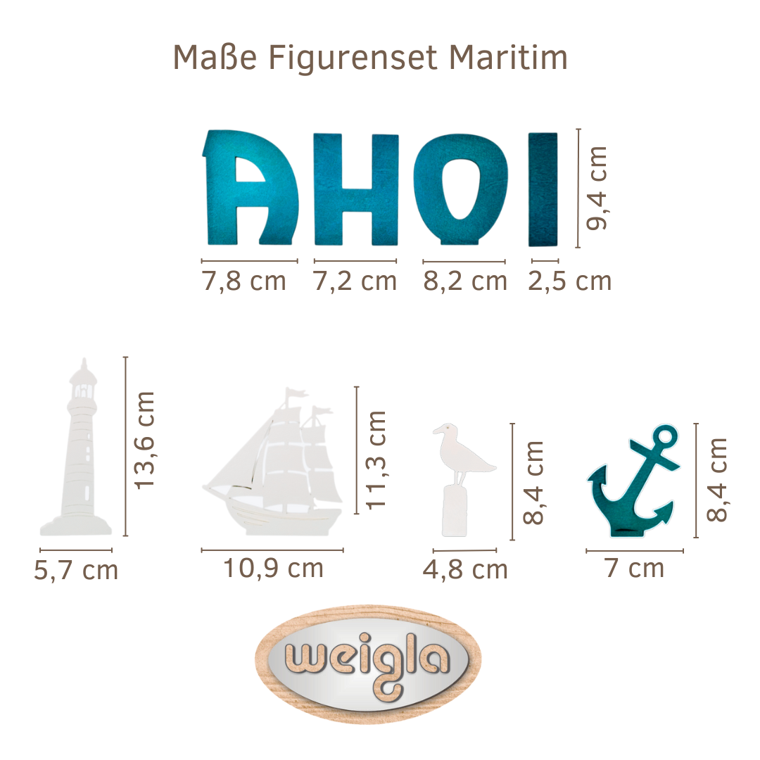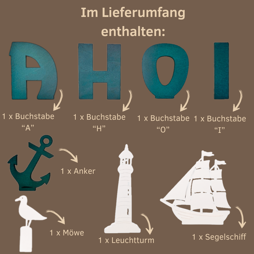 Mit diesem maritimen Set holen Sie sich das Gefühl des Meeres nach Hause. Die acht Figuren – darunter ein klassischer Leuchtturm, ein detailliertes Schiff, ein Anker und eine Möwe – fangen das Flair der See perfekt ein. Mit einem typischen „Ahoi“ wird es zum Blickfang in jedem Zimmer. Besonders im Sommer oder in Räumen, in denen Sie sich einen Hauch von Urlaub und Meer wünschen, setzt dieses Set lebendige Akzente. In Kombination mit dem Dekosockel und der LED-Beleuchtung entsteht ein stimmungsvolles Ambiente, das zu jedem Anlass passt.