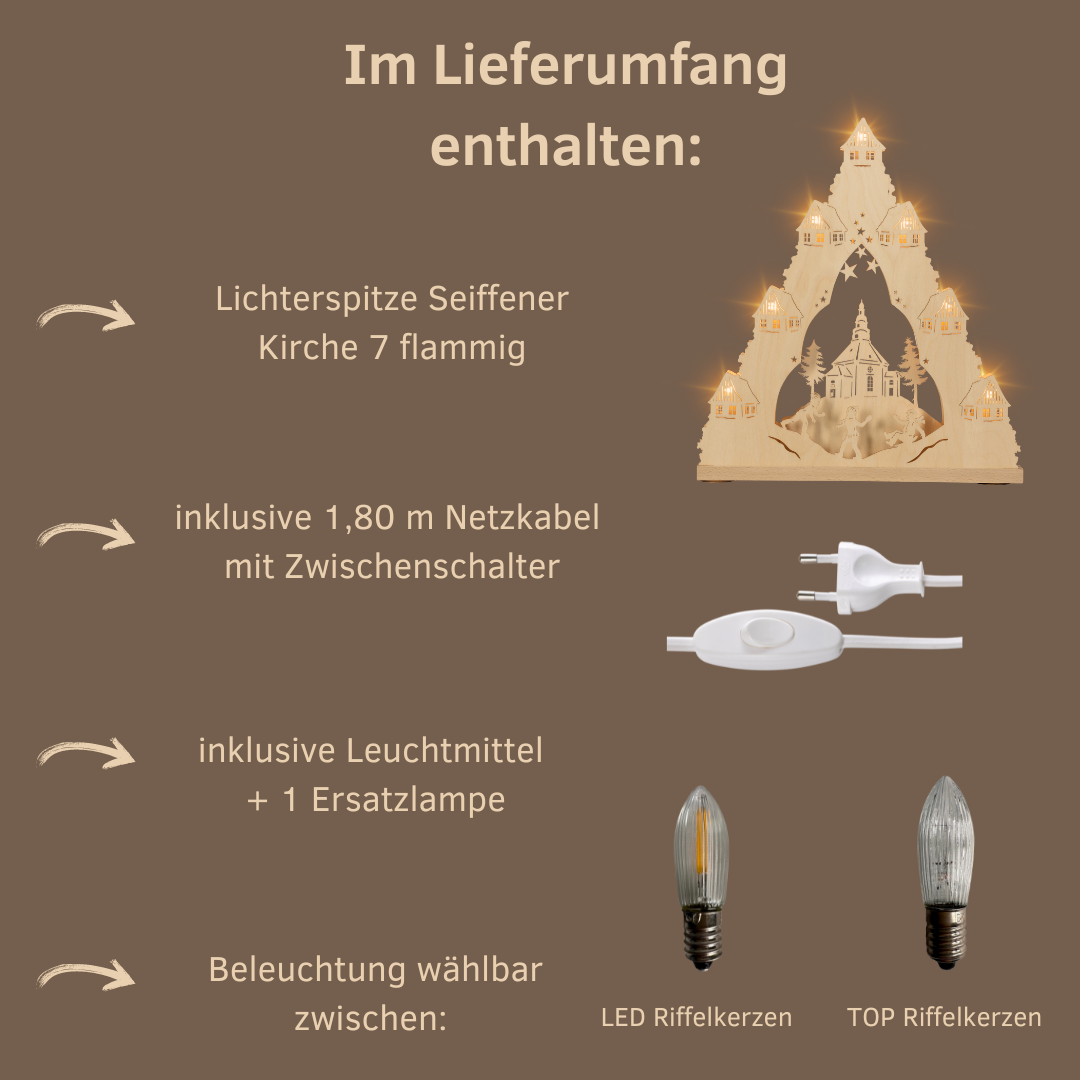 Festlicher Glanz mit der Lichterspitze „Seiffener Kirche“