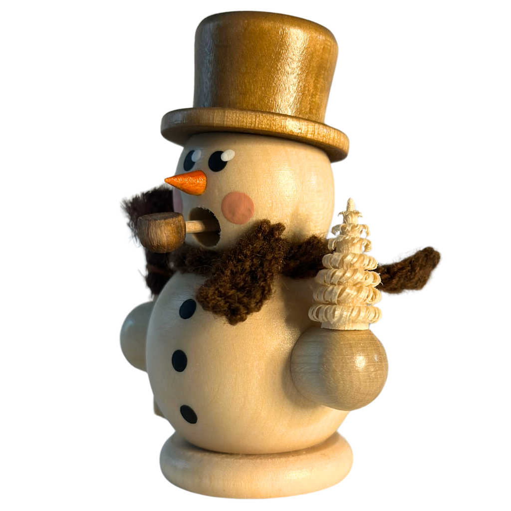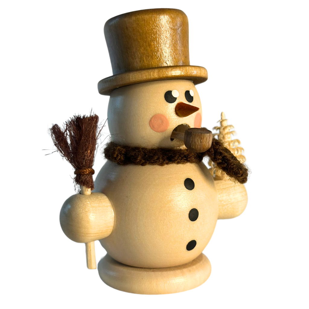 Verleihen Sie Ihrem Zuhause eine Prise Winterzauber mit unserem Mini Räuchermann Schneemann mit Besen. Dieses liebevoll gestaltete Männlein bringt nicht nur festliche Stimmung, sondern auch den warmen Charme erzgebirgischer Handwerkskunst in Ihre vier Wände. Der kleine Schneemann trägt stolz seinen Zylinder und hält einen Besen – perfekt ergänzt durch seinen handgehäkelten braunen Schal. Ideal als Dekoration auf dem Fenstersims, im Adventskranz oder auf dem Weihnachtstisch.