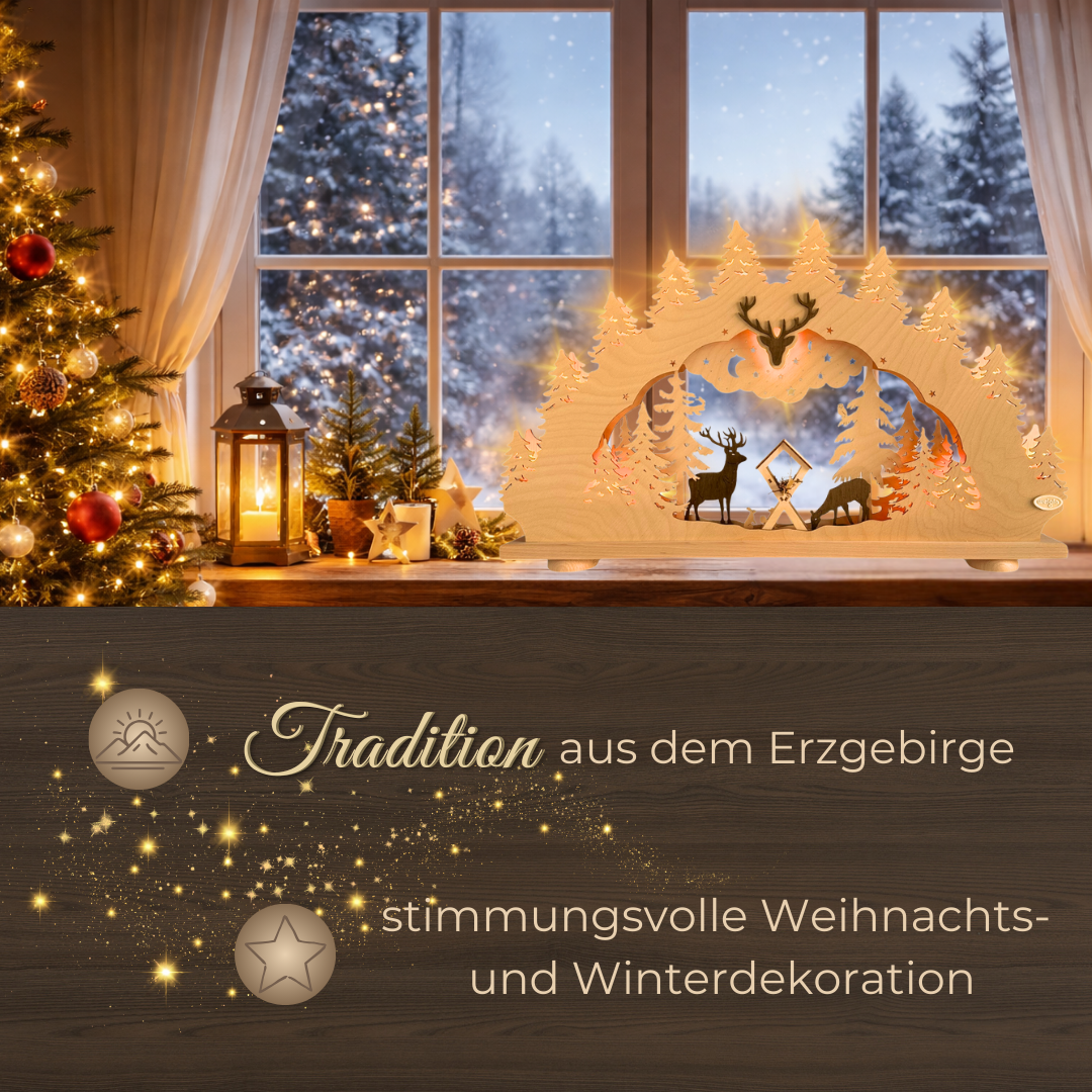 Ob als besonderes Weihnachtsgeschenk oder als stilvolle Ergänzung Ihrer eigenen Dekoration – der Schwibbogen „Im Erzgebirgswald“ begeistert Jung und Alt. Seine zeitlose Eleganz und die emotionale Ausstrahlung machen ihn zu einem wertvollen Begleiter durch viele Winter und Festtage.
