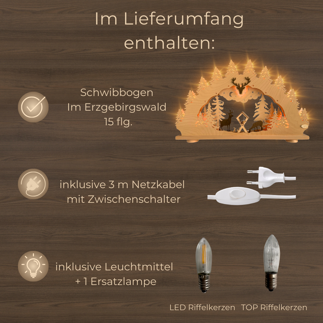 Schreibe die erste Rezension für „Schwibbogen 15 flg. Im Erzgebirgswald“