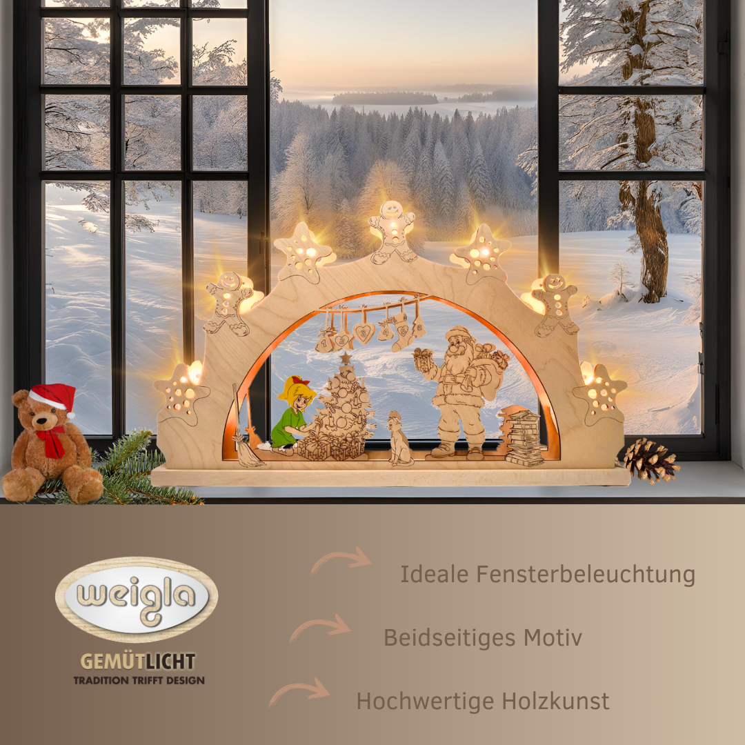 Der Schwibbogen „Bibi Blocksberg feiert Weihnachten“ von WEIGLA ist eine festliche Dekoration, die Weihnachtsfreude direkt ins Haus bringt. Der liebevoll gestaltete Schwibbogen zeigt mit seinen 7 LED-Leuchten und der Original-Lizenz die kleine Hexe Bibi Blocksberg, die mit Kartoffelbrei Weihnachten feiert. Der Schwibbogen verbindet weihnachtliche Symbole wie den Weihnachtsmann, festliche Plätzchen und einen liebevoll geschmückten Tannenbaum mit der Magie von Bibi Blocksberg. Das warme Licht der LEDs schafft eine gemütliche Atmosphäre und bringt die Weihnachtsszene wunderbar zur Geltung.