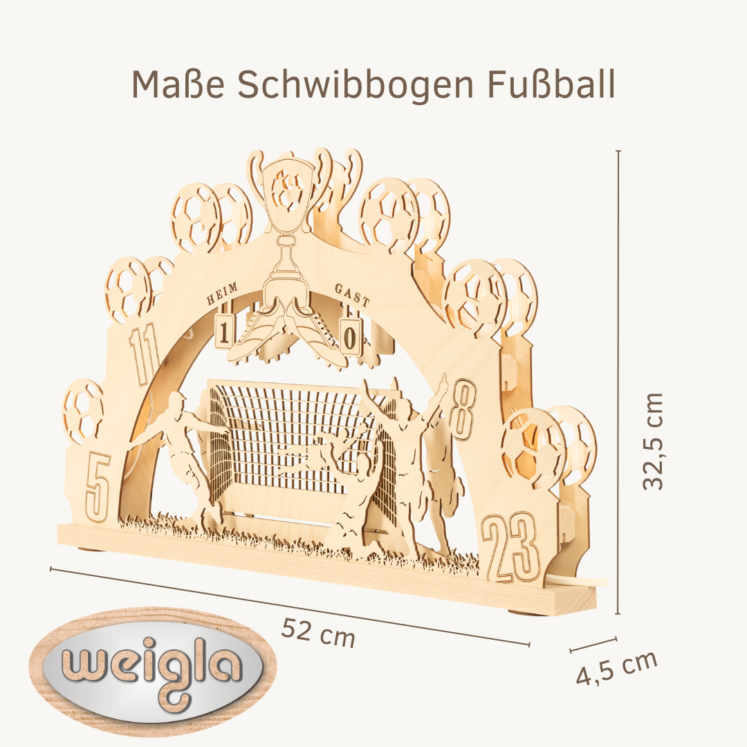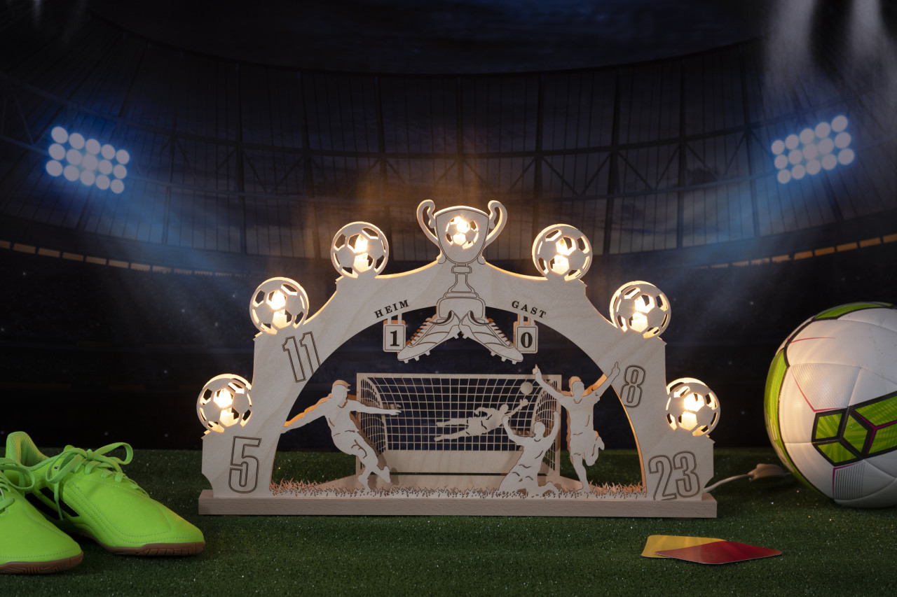 Das perfekte Geschenk für jeden Fußballfan! Ob zu Weihnachten, zum Geburtstag oder einfach so – mit diesem Schwibbogen machen Sie garantiert eine Freude. Erleben Sie die Begeisterung in den Augen des Beschenkten, wenn er dieses einzigartige Kunstwerk sieht.