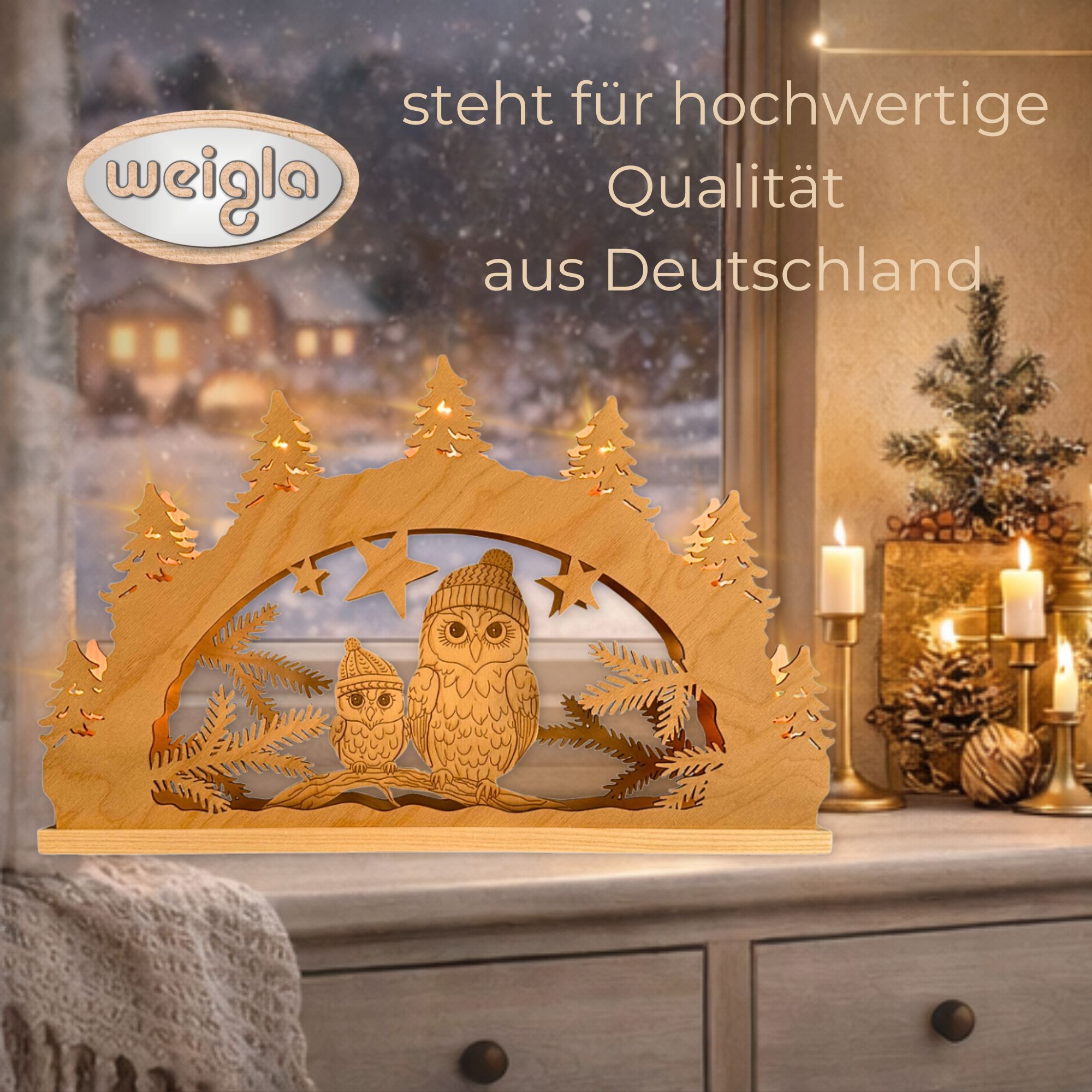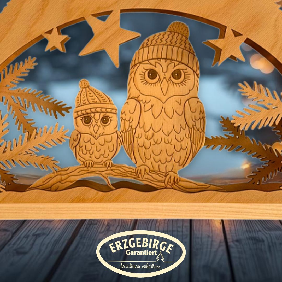 - Schwibbogen Wintereulen im Tannenwald