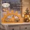 Die integrierte Beleuchtung sorgt für ein sanftes, warmes Licht, das sofort eine festliche Stimmung schafft. Ideal für dunkle Wintertage, schafft der Schwibbogen eine beruhigende Umgebung und lädt zum Entspannen ein. Die Kombination aus Licht, Holz und filigranen Details macht dieses Dekorationsstück zu einem echten Highlight in jeder Wohnung.