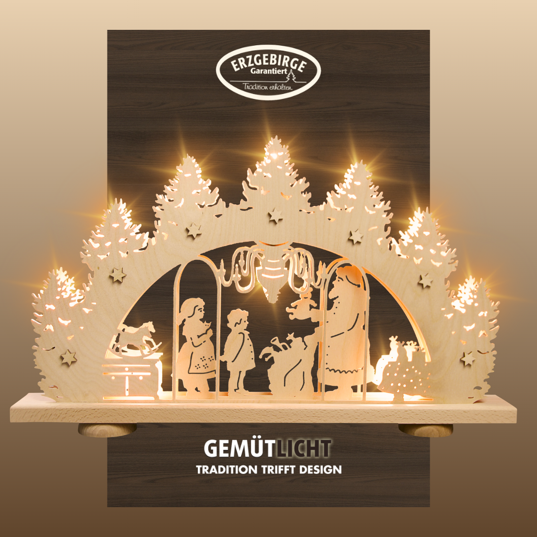 Möchten Sie Ihren Schwibbogen Bescherung in Ihr Fenster stellen?