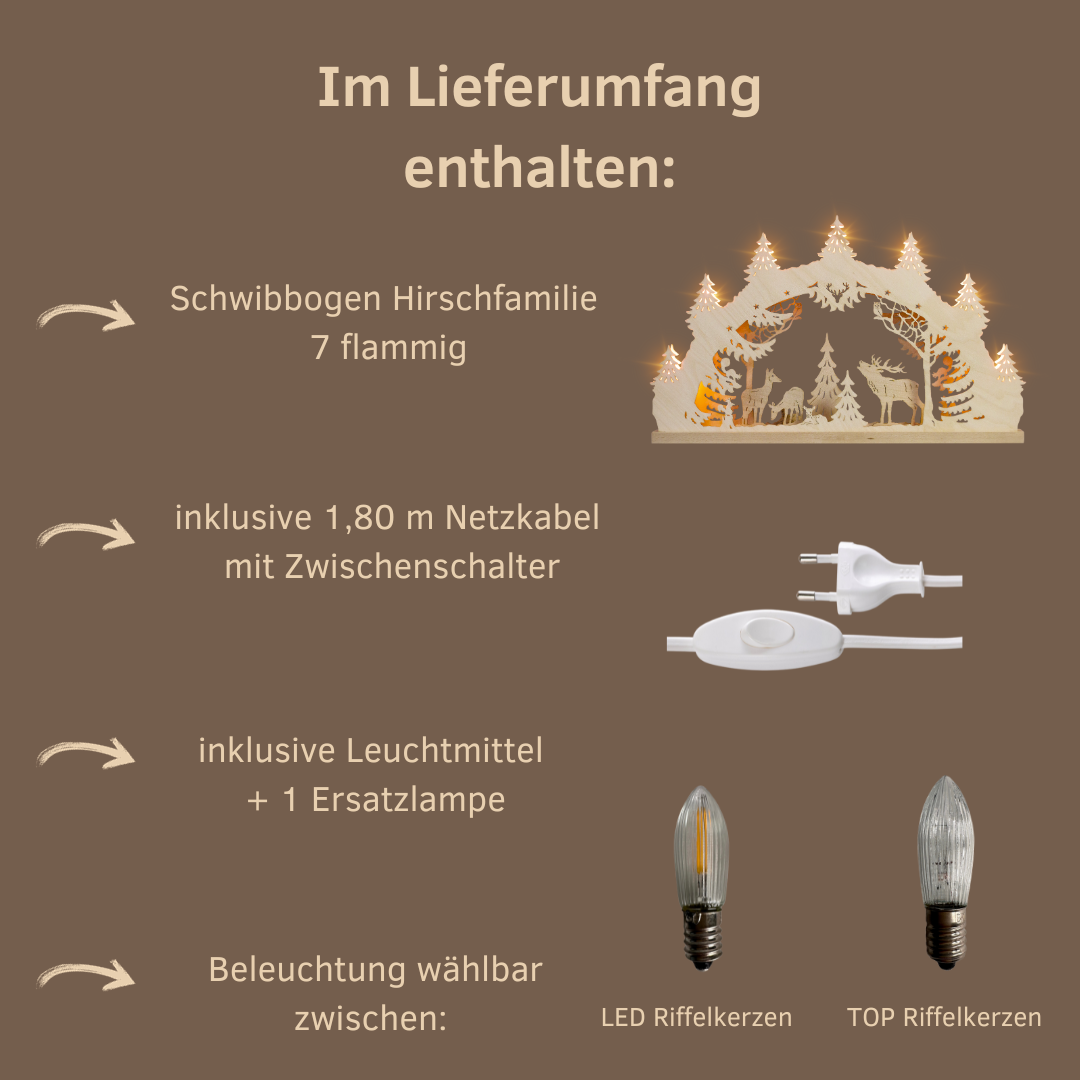 Der Schwibbogen „Hirschfamilie“ bringt die Magie der Weihnachtszeit direkt in Ihr Zuhause.