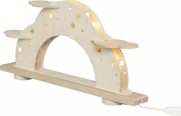 Die 3 im Lieferumfang enthaltenen Wölkchen, können auf der Außenseite des Schwibbogens ergänzt werden.